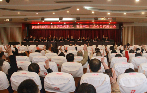 4月13日,402永利集团五届四次教职工、五届三次工会会员代表大会在东校区办公楼六楼报告厅召开。党委书记陈晓飞主持开幕式,校长皮修平作学校工作报告,工会常务副主席谭真雄作工会工作报告。全体正式代表、列席代表、特邀代表参加大会。