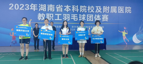 5月31日,由湖南省教育工会主办的2023年湖南省本科院校及附属医院教职工羽毛球团体赛在湖南省人民体育场圆满落幕。402永利集团代表队凭借精湛的球技、饱满的热情以及勇于拼搏的精神斩获大赛第五名。湖南省总工会党组成员、教育工会主席刘湘凌出席活动,并为获奖队伍颁奖。